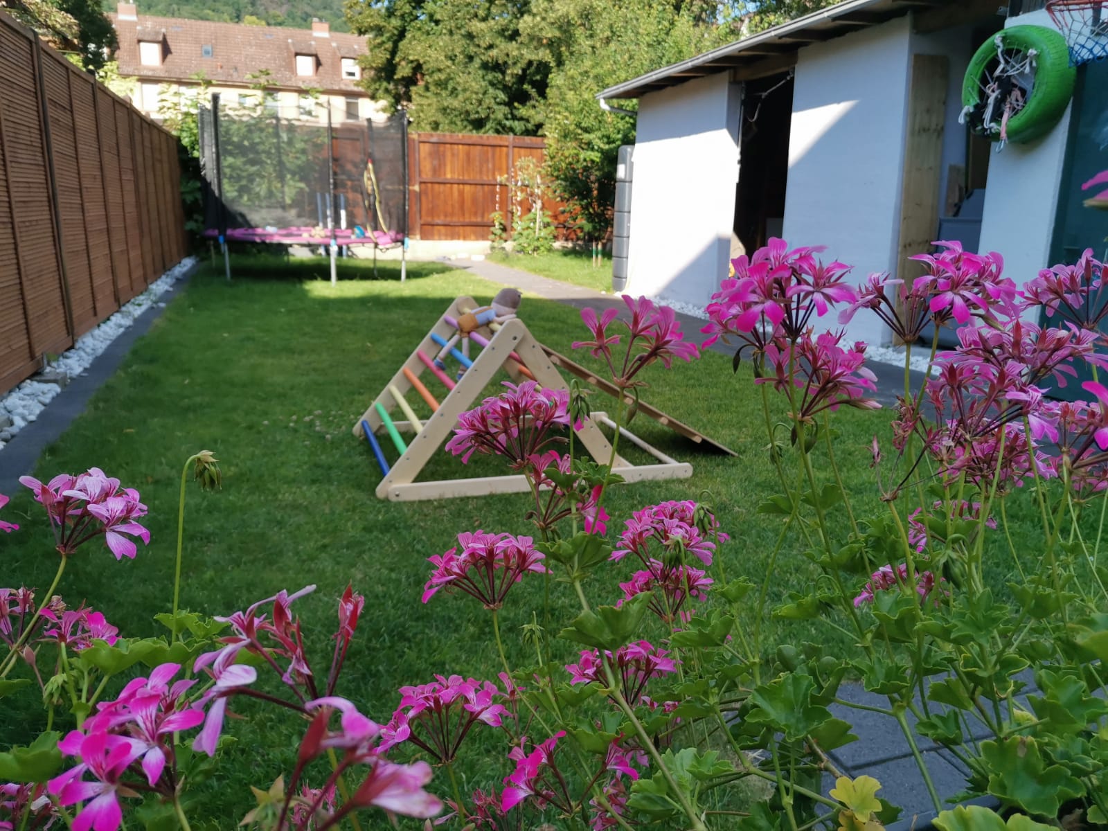 Unser Haus verfügt über einen großen Garten, eine große Terrasse und einen direkten Zugang zum Gemeinschaftsspielplatz, sodass die Kinder immer die Möglichkeit haben, draußen zu spielen.